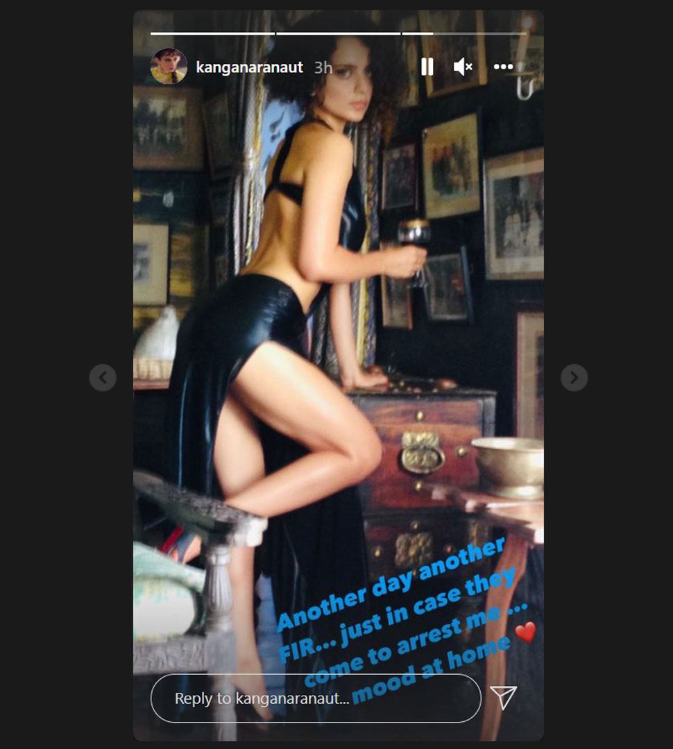 इस तस्वीर को देखकर साफ जाहिर हो रहा है कि अपने खिलाफ हुई FIR को कंगना ने नजरअंदाज कर दिया है. वह अपने वि”रोधि’यों को अपनी तस्वीर पर एक मैसेज लिखकर जवाब देती नजर आ रही हैं. उन्होंने तस्वीर के साथ लिखा है, ‘नया दिन नई एफआईआर… अगर वे लोग मुझे अरेस्ट करने आएं तो घर पर मेरा मूड कुछ ऐसा है.’