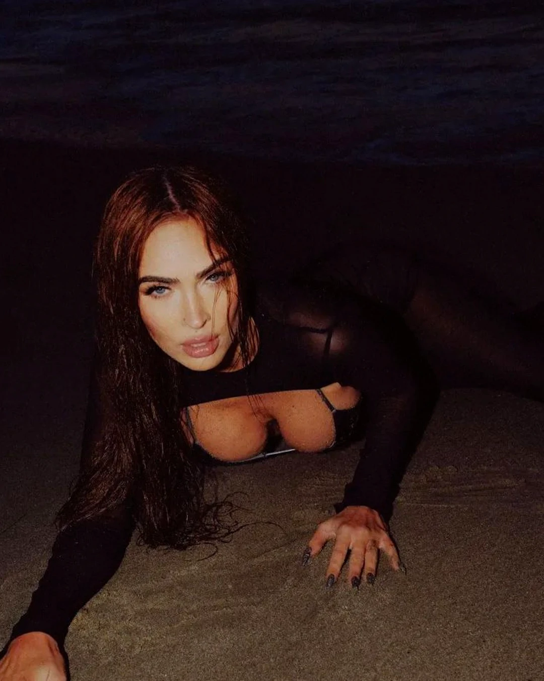 मेगन फॉक्स वेट हेयर के साथ मैटेलिक सिल्वर बिकिनी में बीच पर पोज़ देते हुए बेहद बोल्ड और सेक्सी लग रही हैं।