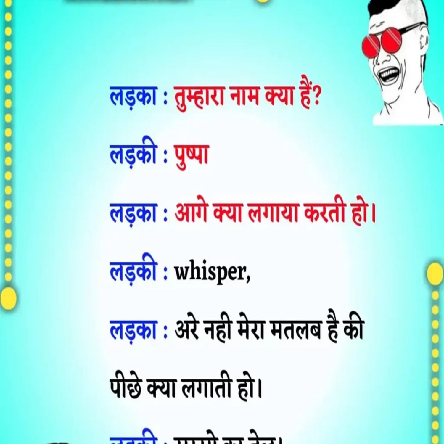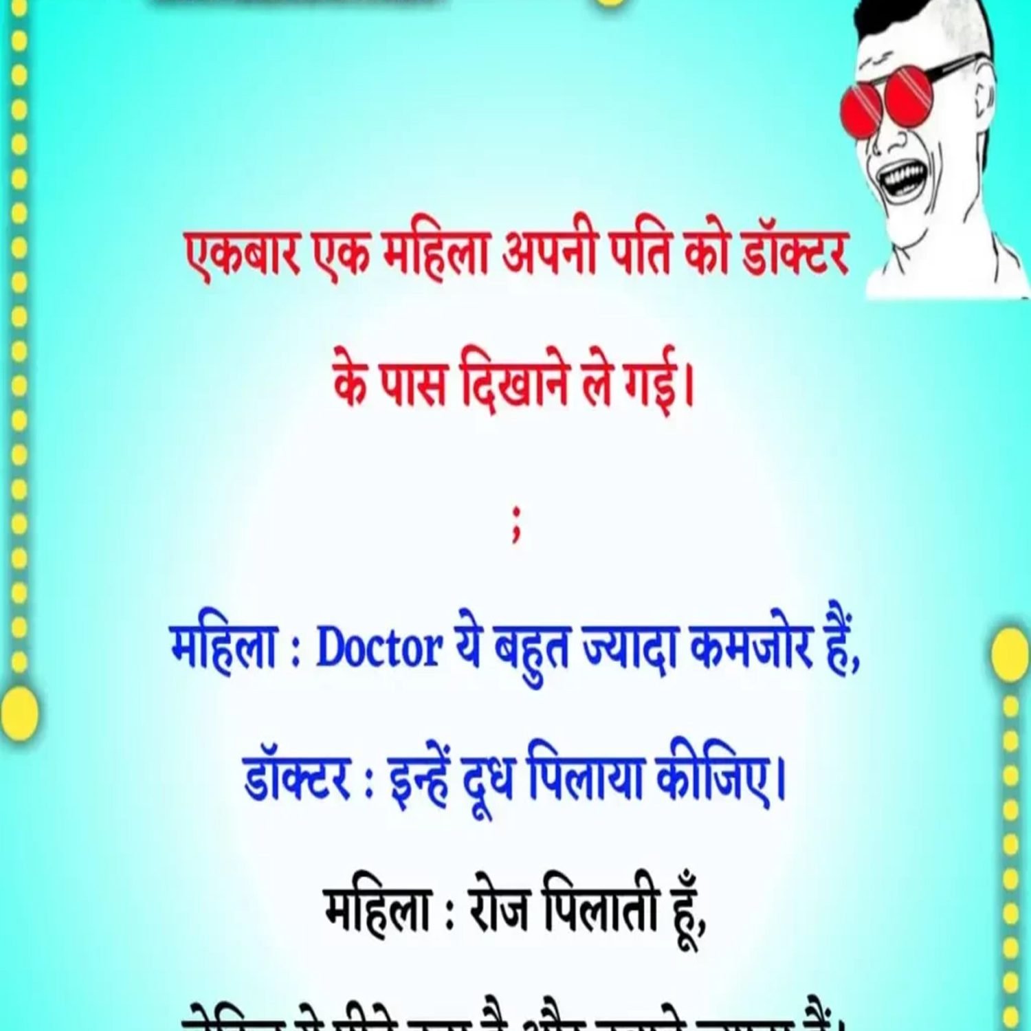 एक बुढ़िया का दामाद बहुत हीं काला था । . सास : दामाद जी आप तो 1 महीना यहाँ रुको दूध, दही खाओ । मौज करो आराम से रहो यहाँ । 😉