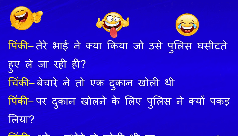 पिंकी– तेरे भाई ने क्या किया जो उसे पुलिस घसीटते हुए ले जा रही ही? 😳 चिंकी– बेचारे ने तो एक दुकान खोली थी पिंकी– पर दुकान खोलने के